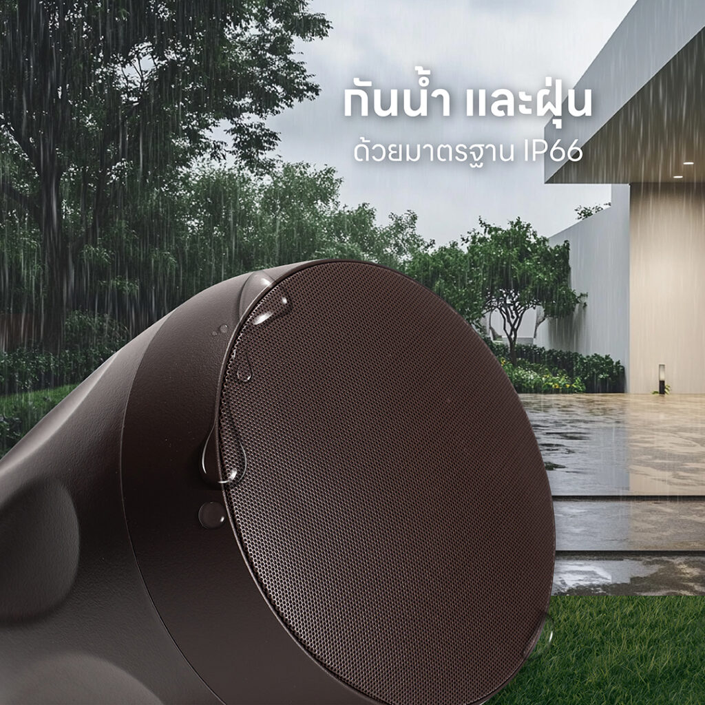 ลำโพงในสวนที่จะมาเติมเต็มความสุนทรียภาพแห่งการฟังดนตรีนอกบ้านและเติมเต็มบรรยากาศให้สมบูรณ์แบบมากขึ้น คุณสมบัติลำโพงที่สามารถกันน้ำได้ และมีระบบปรับระดับเสียงเพื่อให้ได้สัมผัสประสบการณ์เสียงรอบทิศทาง และคุณภาพเสียงที่เต็มรูปแบบ